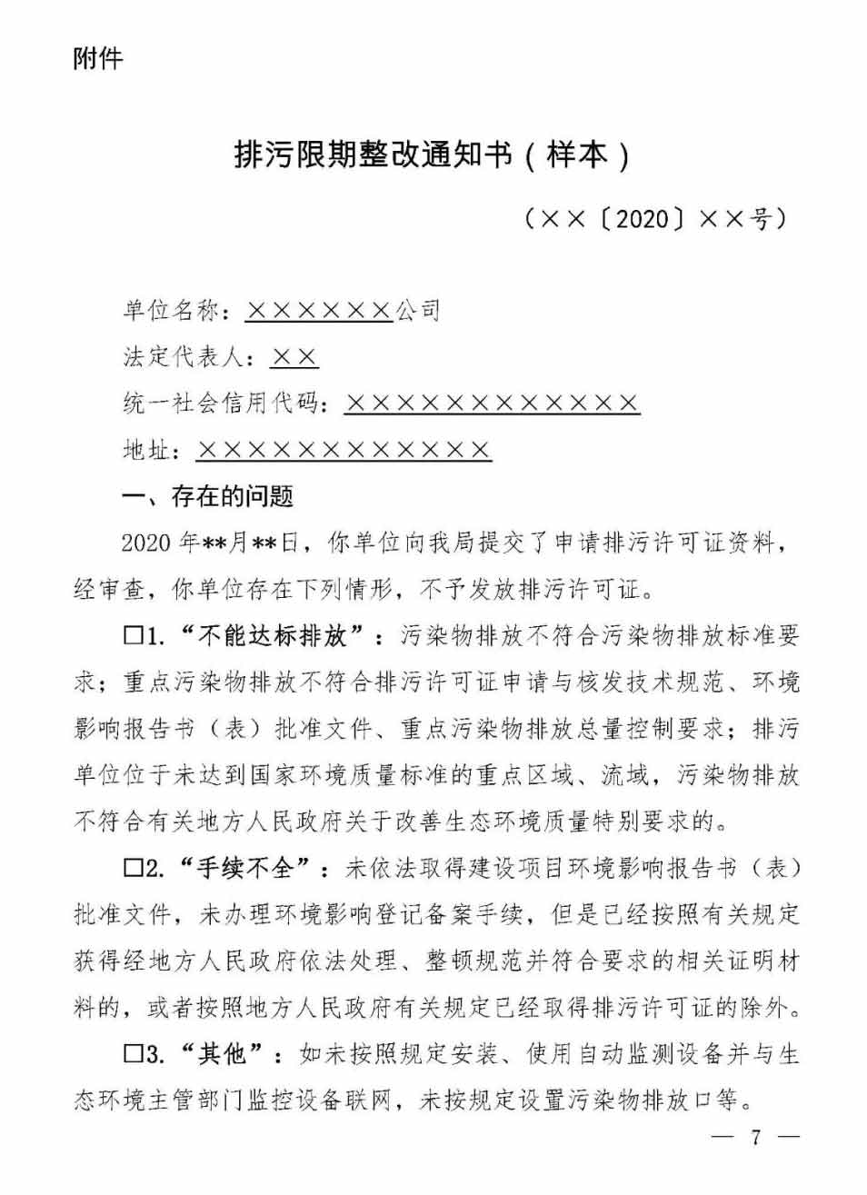附件:排污限期整改通知書(樣本)